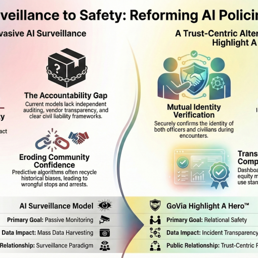 This design also addresses a core AI fairness concern. Instead of feeding biased historical arrest data into black-box prediction engines, GoVia’s analytics would be grounded in rich, contextual encounter data—who was stopped, what happened, and whether policy and law were followed—auditable by independent researchers and community oversight bodies.