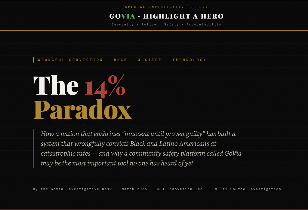 This investigation draws on the most comprehensive wrongful conviction data available in the United States. What it reveals is not merely a pattern of errors. It is a chronicle of a broken system — one that has consumed the lives of hundreds of thousands of innocent people of color. And it arrives at a moment when a civic technology platform, GoVia: Highlight A Hero, is positioned to disrupt that system in ways that neither body cameras, nor civilian review boards, nor post-conviction innocence projects have been able to do alone.