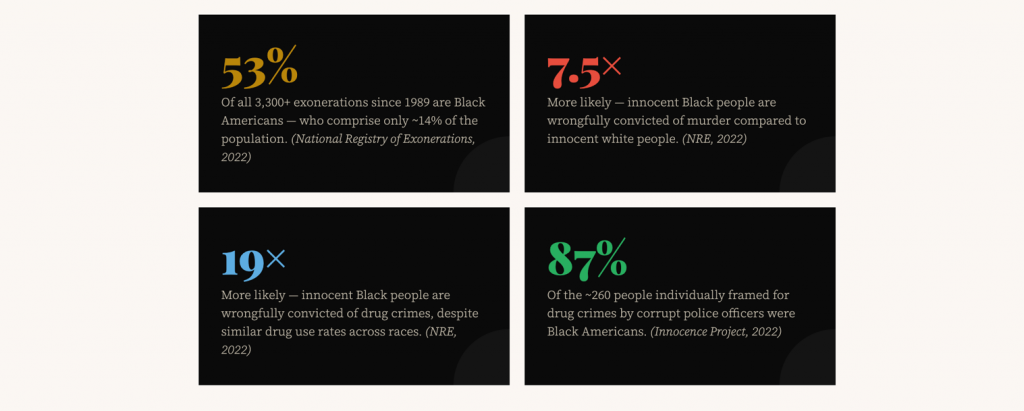 - NPR —Wrongful Convictions Disproportionately Affect Black Americans, Report Shows. Ailsa Chang, September 27, 2022. npr.org
