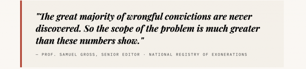 Those numbers are staggering enough in isolation. Measured against the broader arc of wrongful conviction data since 1989, they become something else: evidence of a structural failure with specific, identifiable racial characteristics.